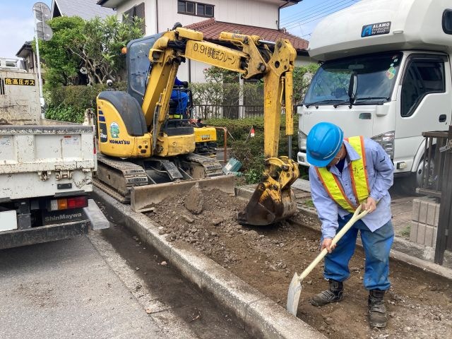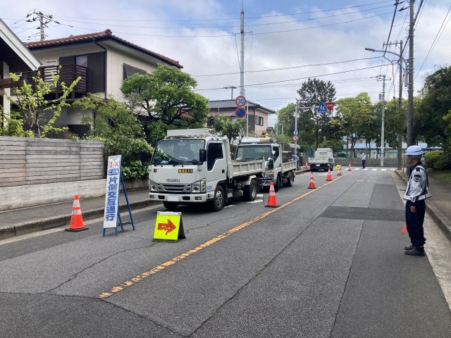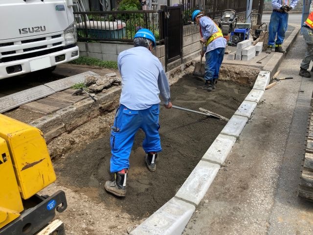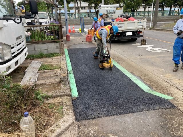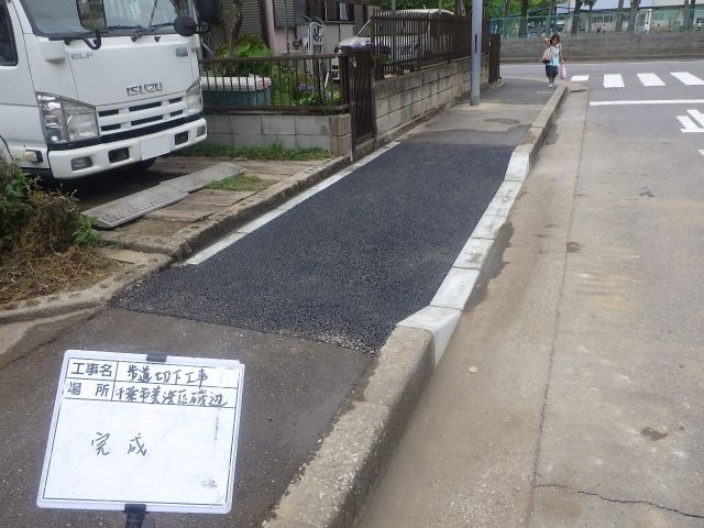 歩道切下げ工 アスファルト舗装 付帯工事(交通誘導員配置、他) |